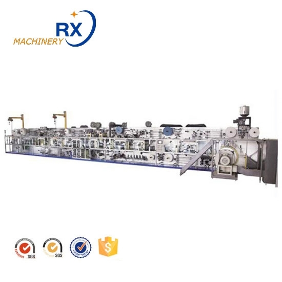 RX-HNK500-SV big waist band lamination online diaper production line is a full-servo machine.It can do 4 sizes.